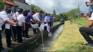 Dalam menjaga ekosistem perairan dilaksanakan pelestarian lingkungan di saluran irigasi, di Banjar Gegelan, Desa Beraban, Kec. Kediri.